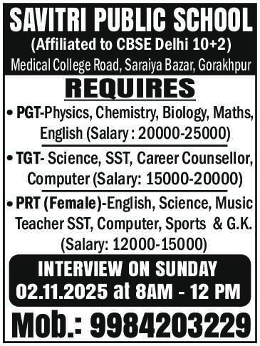 Kindly send your resume in PDF format on mail - schoolsavitri@gmail.com or on WhatsApp - 9956102838